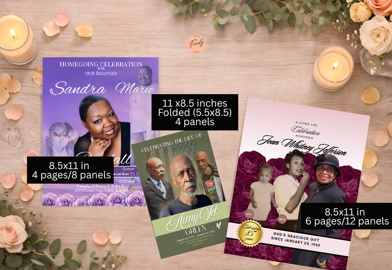 When words feel insufficient, we help you create something lasting. From celebration of life programs to memorial blankets — every piece designed with care, love, and intention for the family left behind.